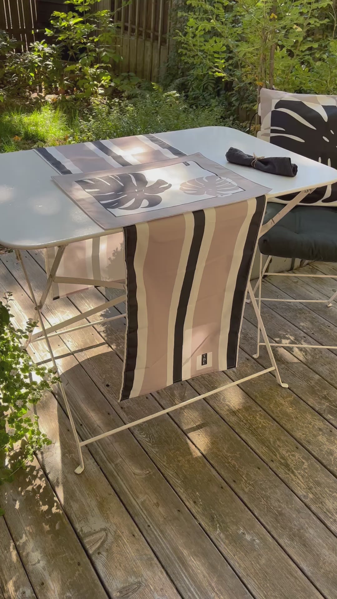 Everything harmonizes perfectly with our sets of beach towels and cushions, creating a cohesive and elegant decor. Whether for a casual lunch or an outdoor evening, each element comes together to bring style and comfort to your space.